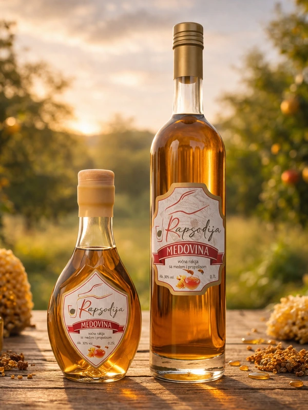Med pretočen u flašu! Pitka, prava rakija za ljubitelje likera, sa dodatkom propolisa. Prirodni pčelinji proizvodi su upotrebljeni za proizvodnju ove rakije, pa zato, uživajte sa nama! Živeli!