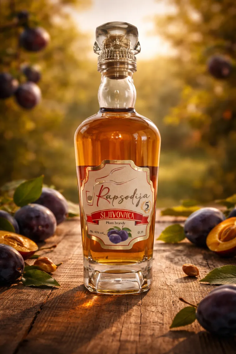 Prava šljivovica! Rakija pravljena tradicionalnom metodom, od starih vrsta šljiva, koje imaju aromu zaboravljenih ukusa. Uživajte u pravoj rakiji koja je odležavala 5 godina u hrastovim buradima vrhunskog kvaliteta!